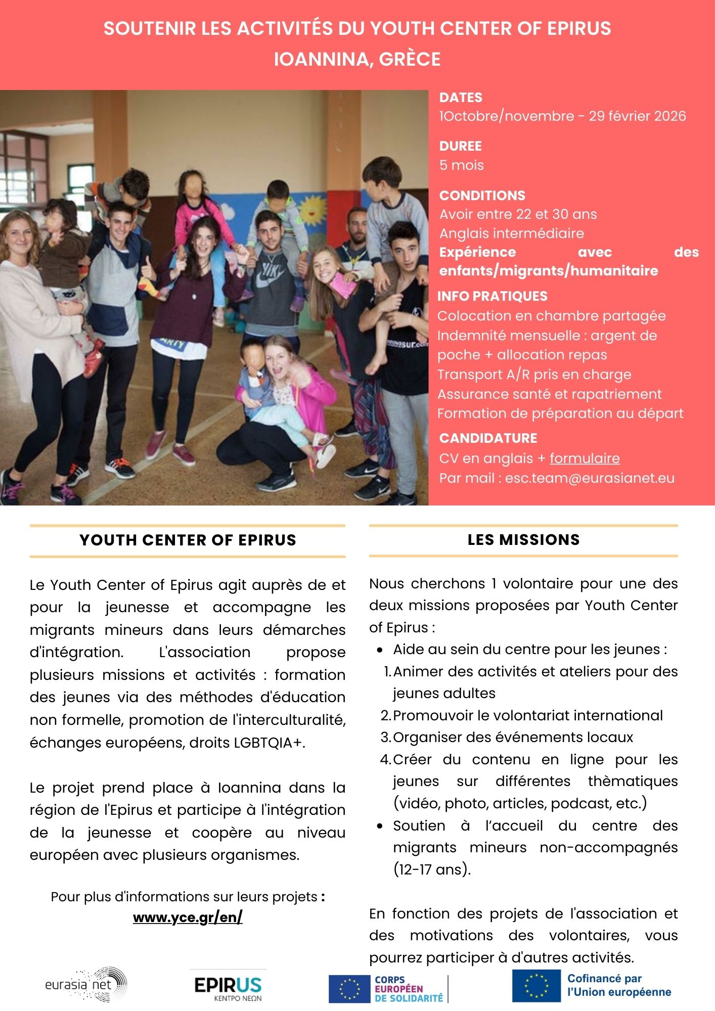 Mission : Soutenir les activités de Youth Center of Epirus envers les jeunes et mineurs non-accompagnés